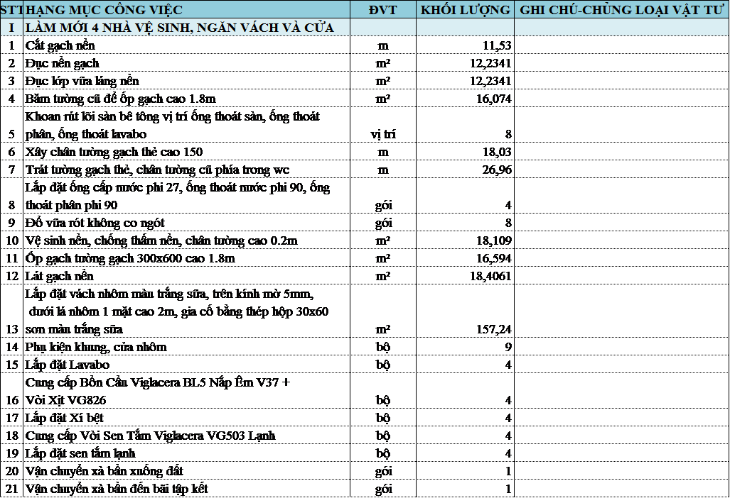 - Nội dung công việc cần báo giá: